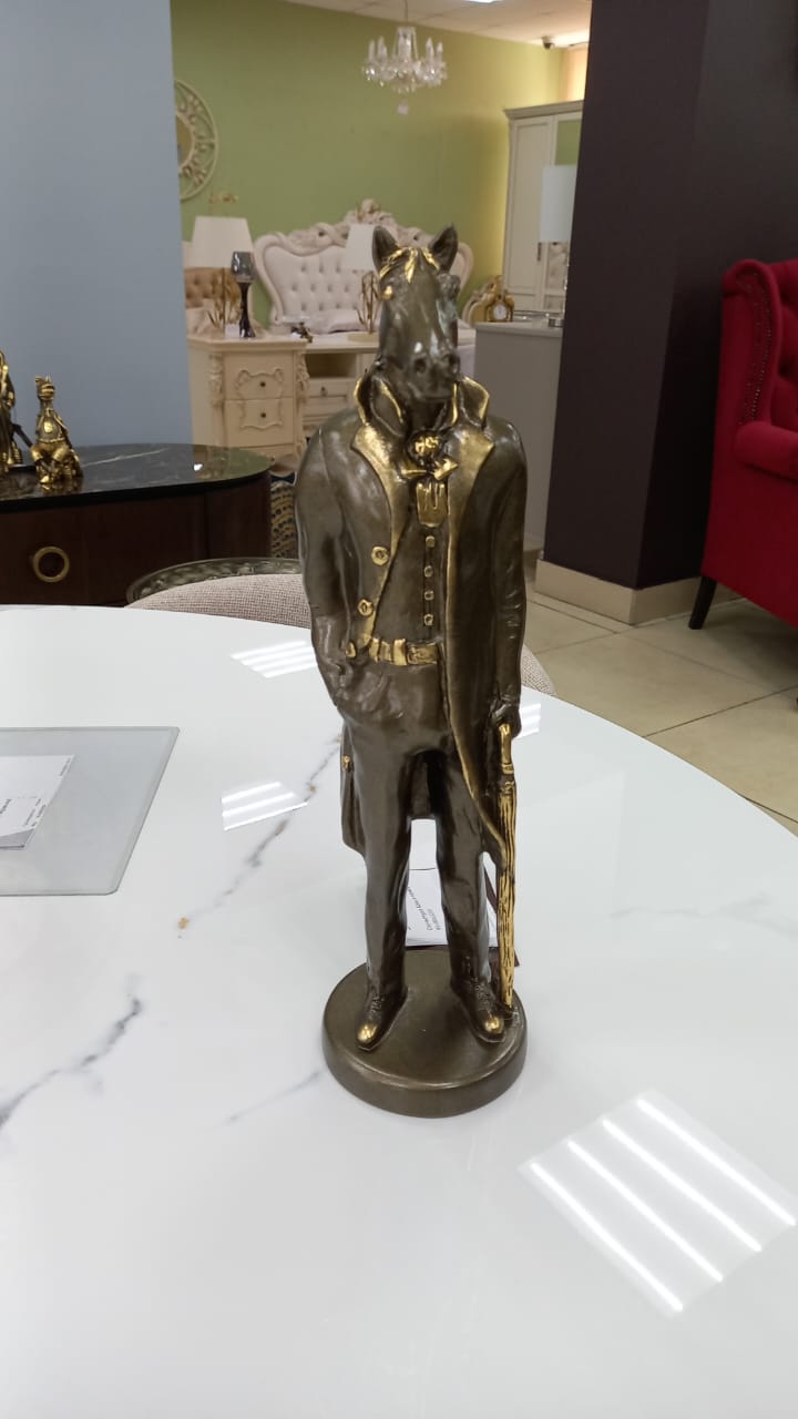 Уникальная скульптура "Конь в пальто" из натурального материала – коелгинского мрамора. Это изысканное украшение интерьера, сочетающее элегантность, юмор и высокое мастерство исполнения. Каждая деталь тщательно проработана вручную, что придает фигуре особую выразительность и художественную ценность.