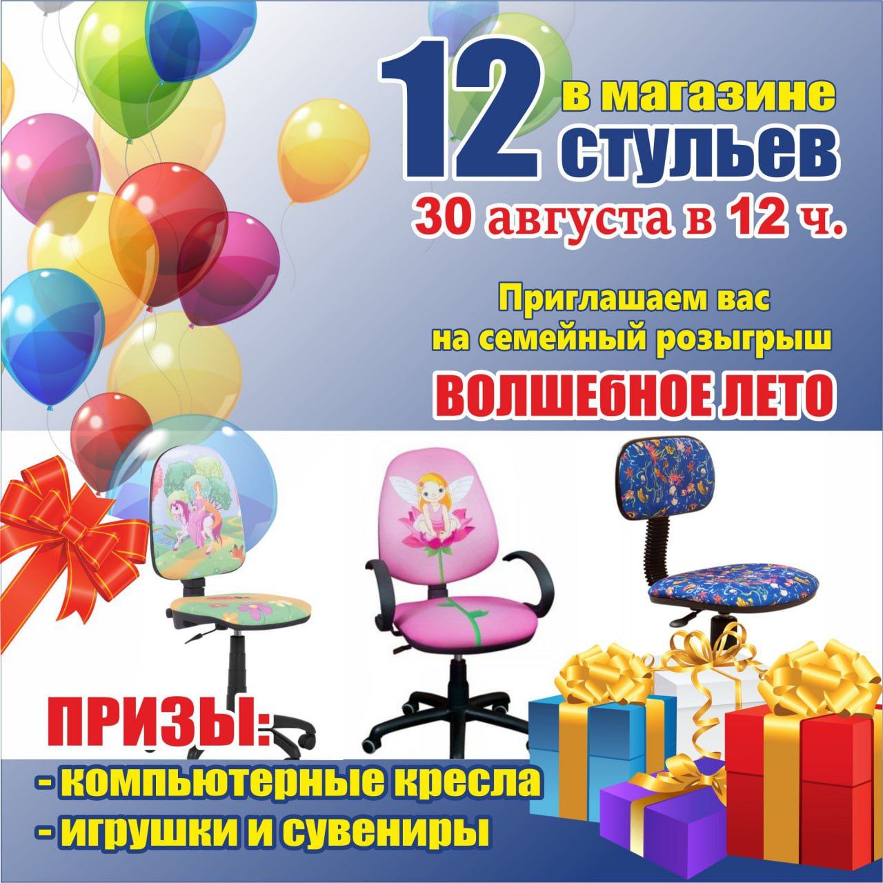 Приходите к нам на праздник и выигрывайте компьютерные детские кресла, подарки и призы.